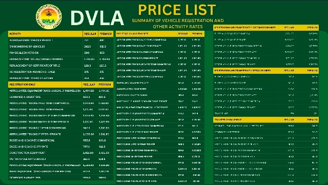 The Authority encouraged the public to review the updated fee schedule and contact DVLA offices nationwide for clarification where needed.