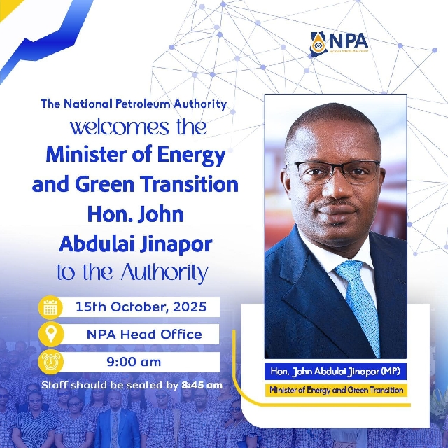 The Minister for Energy, John Abdulai Jinapor, will today pay a working visit to the National Petroleum Authority(NPA) as part of his ongoing stakeholder engagements within the energy sector.