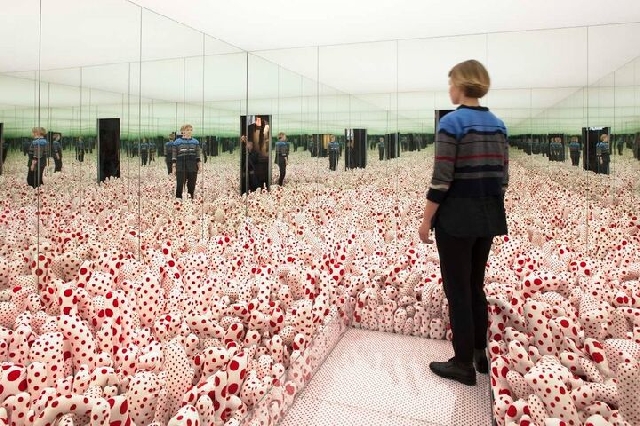 The Infinite Room displayed an illusion of expanded space; the Colour Room, set up with a triad of lights – red, green and blue – casts, multi-coloured shadows in the path of the light rays; and the Under Surveillance Room, made up of multiple TV sets, depicts the advent of social media, which has created a lack of privacy but embraced by enthusiasts, creating an erosion of confidentiality in modern society.
