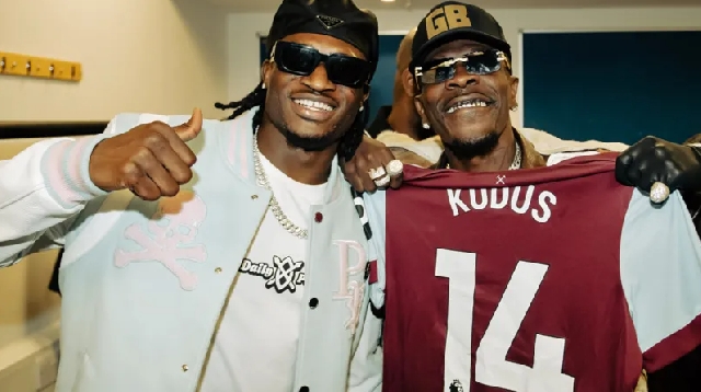 | Michael Tubes: Footballer Mohammed Kudus (L) gave dancehall king Shatta Wale (R) one his West Ham shirts