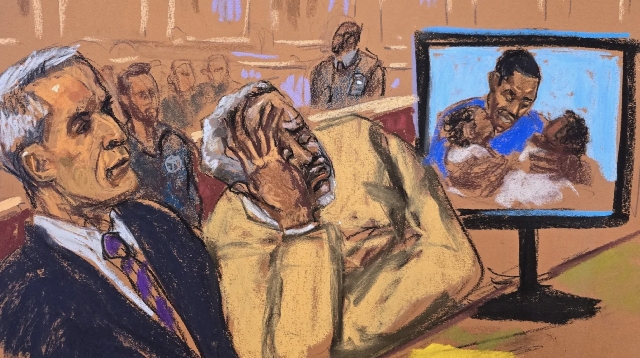 They also watched a video compilation from his legal team showing him with his children as well as the funeral of his former girlfriend Kim Porter, the mother of some of his children who died in 2018.