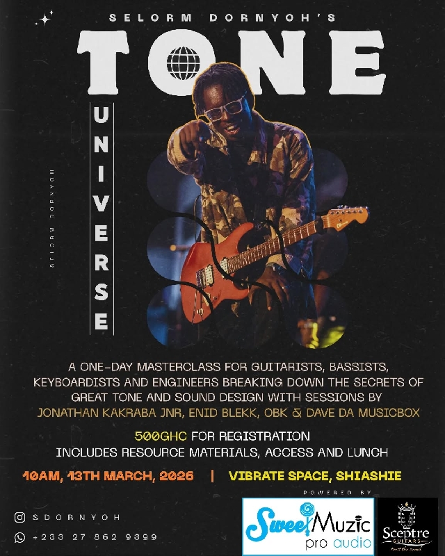 Ghanaian guitarist and member of the award-winning FRA! band, Selorm Dornyoh, has announced a one-day intensive masterclass dubbed Tone Universe, aimed at breaking down the practical and technical secrets behind great tone, sound design and professional performance.