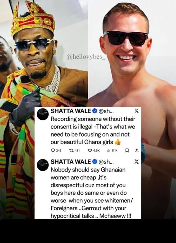 Ghanaian dancehall star, Shatta Wale, has weighed in on the ongoing controversy surrounding the circulation of private videos, stressing that recording individuals without their consent is a criminal act.