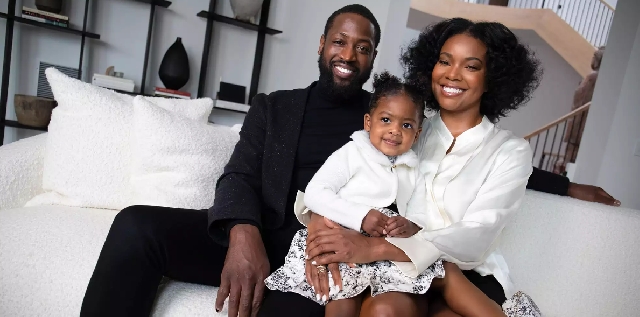 Basketball star Dwayne Wade, his wife movie star Gabrielle Union and their daughter Kaavia who is famous on social media because of memes made out of her striking facial expressions since she was a baby, have been spotted in Ghana.