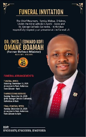 Final funeral arrangements announced for former Defence Minister Dr. Edward Kofi Omane Boamah
