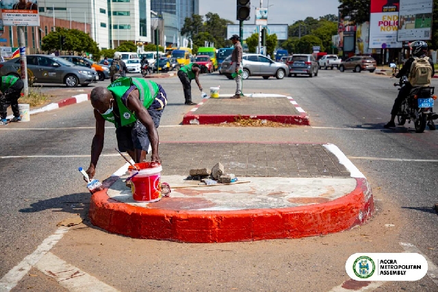 The exercise, which began on Saturday, involved the painting of kerbs along medians and road shoulders from John Evans Atta Mills High Street through to Independence Avenue to improve visibility and eliminate dark spots across the city.