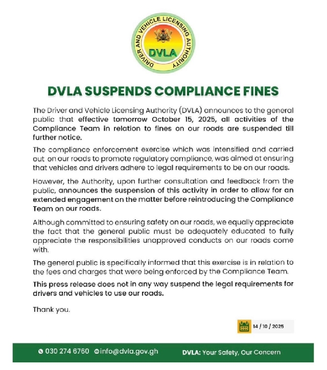 The Julius Neequaye Kotey-led DVLA cautioned road users to consider that while the fines on the road were suspended, all other legal obligations were biding.