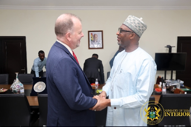 The Minister for Interior, Mohammed Mubarak Muntaka, received the Chargé d’Affaires of the United States Embassy in Ghana, H.E. Rolf Olson, at the Ministry’s office in Accra to discuss ways to enhance bilateral cooperation on security matters.
