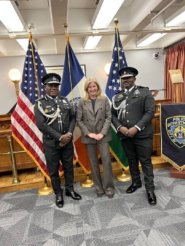 The Inspector-General of Police, Mr. Christian Tetteh Yohuno, on Tuesday, paid a high-level working visit to the New York City Police Department (NYPD) Headquarters at One Police Plaza, where he held bilateral discussions with NYPD Police Commissioner Jessica Tisch and members of her executive command team.