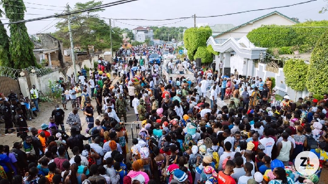 Over 5,000 Ghanaians from far and near gathered at the couple's Accra residence to receive essential food items and drinks.