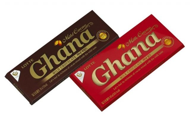 Lotte now offers Ghana Milk, Ghana Mild and Ghana Premium, which is dark chocolate with strong cacao flavours. In addition, the company also sells Ghana Black, which has a darker, thicker taste, again with a strong cacao flavour, and Mini Ghana Mild in single bite-sized packages.