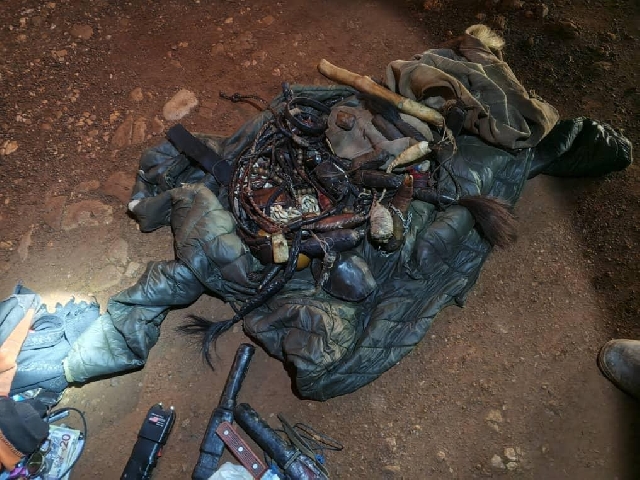 The NAIMOS Taskforce confiscated the suspects’ weapons and talismans during the operation.