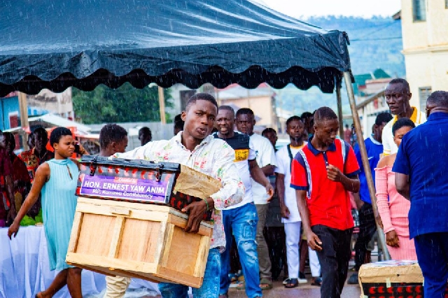Speaking at a ceremony in Kumawu, Mr Anim presented trunks, chop boxes, exercise books, school bags and cash to 400 first-year Senior High School students.