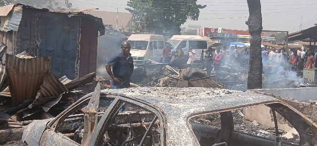 The National Disaster Management Organisation (NADMO) disclosed that 34 vehicles and 24 shops were completely burnt in the blaze.