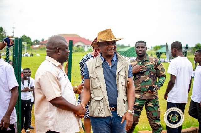 The Volta Regional Minister, Mr. James Gunu, earlier today joined the Agbogbomefia of the Asogli State, Togbe Afede XIV, the President of the Volta Regional House of Chiefs, Togbe Tepre Hodo IV, and the Municipal Chief Executive for Ho, Mr. Stephen Adom, to observe the ongoing military recruitment exercise at the Ho Sports Stadium.