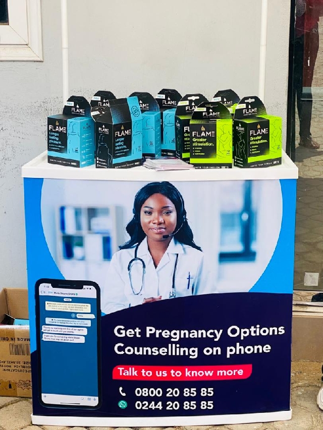 They are informing participants about the range of sexual and reproductive health services they provide and are distributing free Flame condoms as part of their health education efforts.![]()