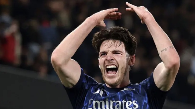 For his goal against West Ham, Rice arrived late into the box to meet a bouncing ball and finish well to score Arsenal's opener in their 2-0 win.