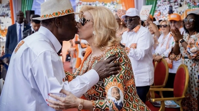 | RHDP (Pic): Alassane Ouattara, seen here with his wife, is thought to be favourite given the opposition vote may be divided