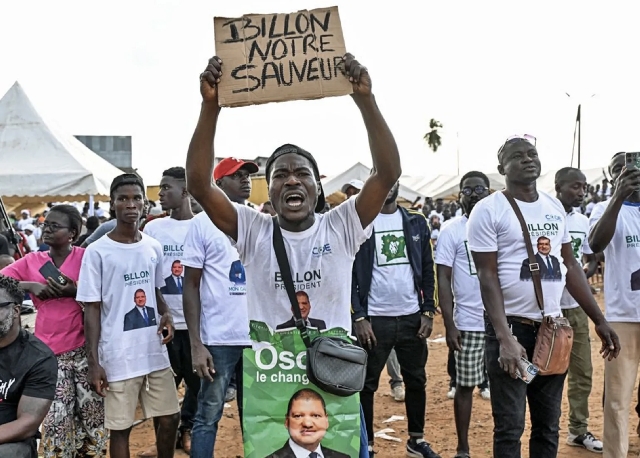 "He represents the young generation," said Salifou Sanogo, who is 19. "It will be my first time voting and seriously, I know he will win. Ouattara is too old, tired and didn't do anything for us. We need change, we need Billon."