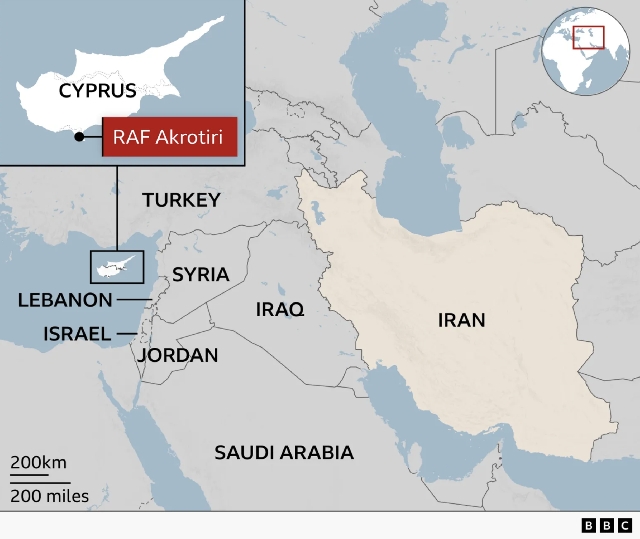 The UK has not said where it thinks the drone that hit the base came from, but the Cypriot government suspects the Iran-backed group Hezbollah in Lebanon.