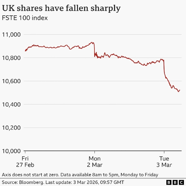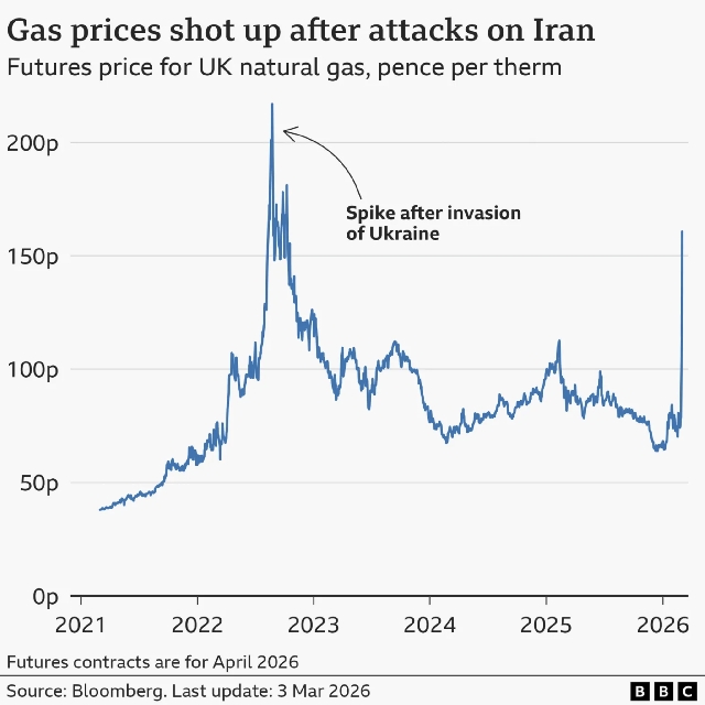 There are fears the fight in a region that plays a key role in global energy supplies and shipping routescould have a similar impact to Russia's full-scale invasion of Ukraine four years ago which pushed up the cost of energy, causing price rises for businesses and consumers around the world.
