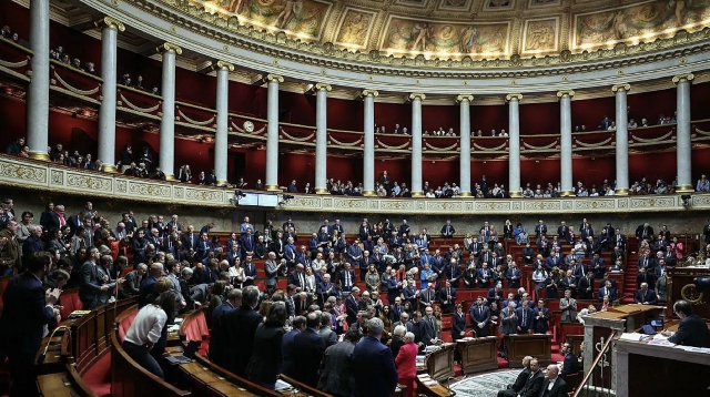 | Alain Jacard/AFP via Getty Images (Pic): Members of Parliament stand to pay tribute to Mehdi Kessaci on 13 November