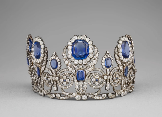 The diadem – a jeweled headpiece worn by royalty – features 24 Ceylon sapphires and 1,083 diamonds that can be detached and worn as brooches, according to the Louvre.