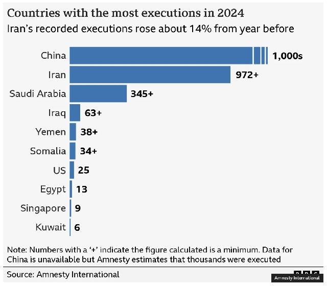 Responding to reports of potential executions, Iran's Foreign Minister Abbas Araghchi said "hanging is out of the question" and there would be "no hanging today or tomorrow".